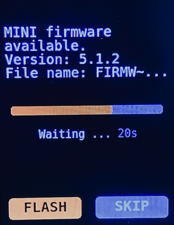 按旋钮,选择FLASH,进行固件升级。